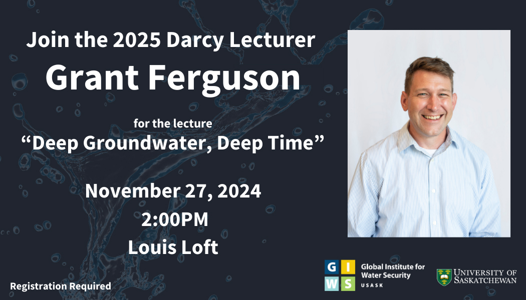Join the 2025 Darcy Lecturer Dr. Grant Ferguson (PhD) for the lecture: "Deep Groundwater, Deep Time" on Wednesday November 27, 2:00pm at Louis' Loft. Registration is required.
